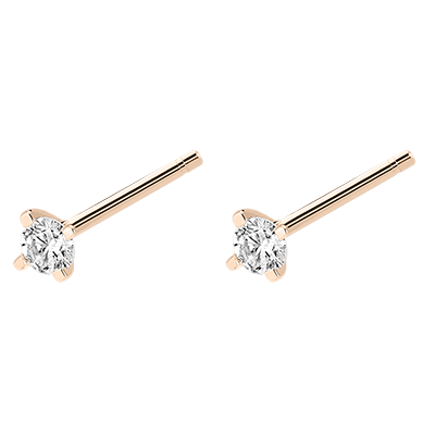 Lo splendore e la freschezza di un paio di piccoli orecchini a bottone in oro rosa con diamanti. Da abbinare a piacere ad altri modelli o da indossare spaiati.