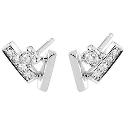Un diamante rotondo, un pavé di brillanti ed un motivo in Oro bianco si uniscono per formare preziosa brina da indossare. Degli orecchini raffinati per un delicato tocco di luce al volto.