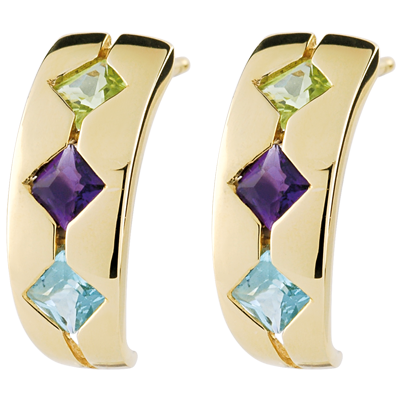 Orecchini Fantasia - Oro giallo - 9 carati - Topazio -Ametista - Olivina - 0.63 carati