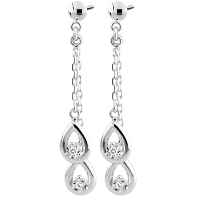 Una coppia di gocce di diamanti volteggiano con grazia, sospese a un motivo in Oro bianco