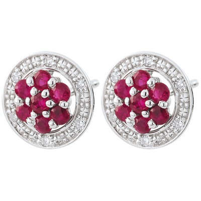 Una miriade di rubini e diamanti bianchi impreziosiscono una montatura d'Oro bianco.