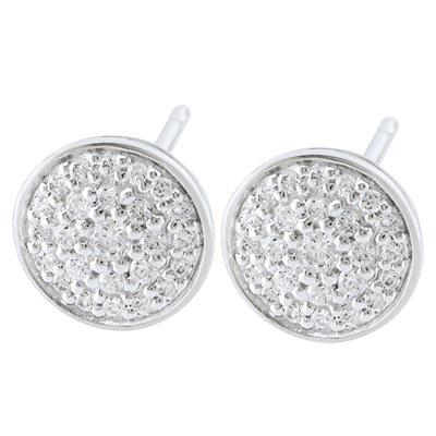 Una miriade di diamanti racchiusa in un orecchino a cerchio che sprigiona tutto il loro splendore. Ogni orecchino è impreziosito da 25 diamanti.