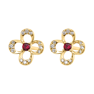 Un paio di delicate fioriture, ciascuna impreziosita da un rubino centrale e 12 diamanti scintillanti.Luminosi e raffinati, sono perfetti per dare un tocco di eleganza ad ogni momento.