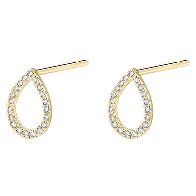 Due gocce impreziosite da un delicato pavé di diamanti incastonato su oro giallo, per un modello puro, vicino alle forme naturali e alle emozioni.
