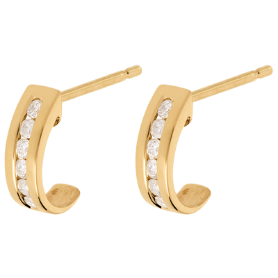 Orecchini Mezza Luna - Oro giallo pavé -18 carati - 12 Diamanti - 0.22 carati
