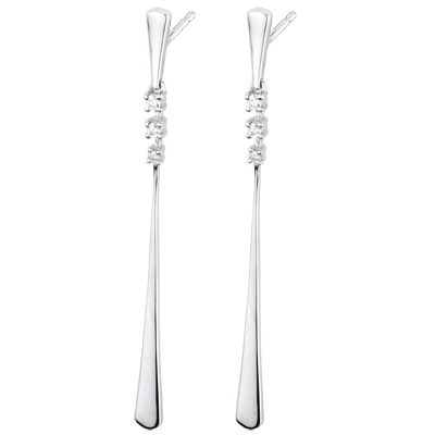 Una coppia di pendenti in Oro bianco impreziositi da diamanti che conferiscono movimento e leggerezza.