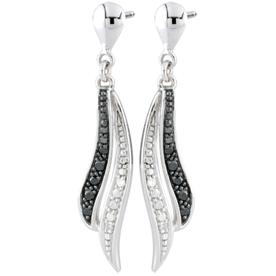 Orecchini pendenti Chiaroscuro - Oro bianco - 9 carati - Diamanti bianchi e neri
