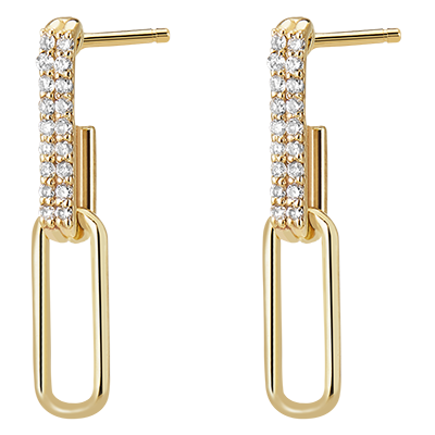 Un duo di maglie in oro giallo delicatamente diamantate ondeggiano al ritmo dei vostri movimenti. Una coppia di orecchini moderni e femminili.