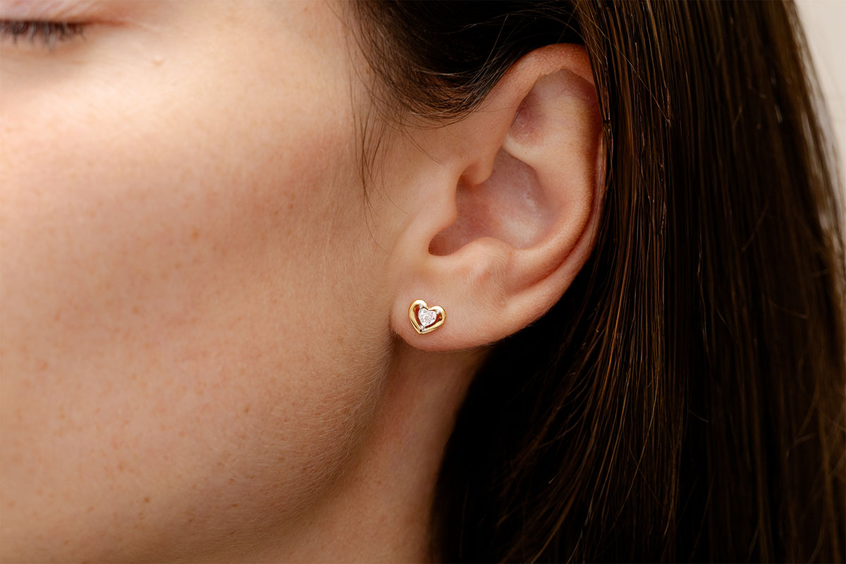 PREZIOSO SEGRETO Nº8Orecchini a lobo Cuore - Oro giallo 9 carati - Diamante ID : 2427 4.7
