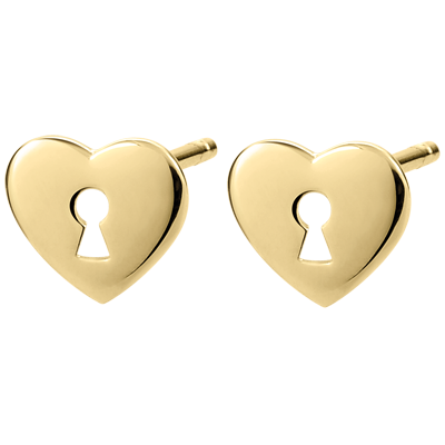 I cuori in Oro giallo decorati da una piccola serratura incarnano il simbolo dei segreti d'amore.