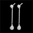 Ogni orecchino presenta una base a lobo pavé di diamanti collegata da una sottile catenina a una goccia anch’essa pavé, per uno scintillio raffinato e un movimento delicato.