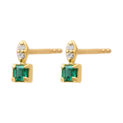 Orecchini Soléane – Oro giallo 9 carati con smeraldi sintetici e diamanti sintetici