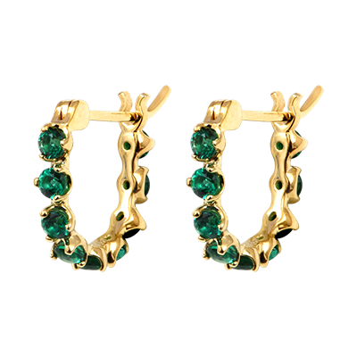 Una pavé di smeraldi sintetici regala una luminosità verde e vibrante.Un tocco prezioso di natura alle tue orecchie.