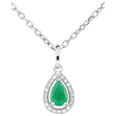 Uno smeraldo si trasforma in un frutto prezioso circondato da diamanti, per diventare un ciondolo in Oro delicato e femminile.