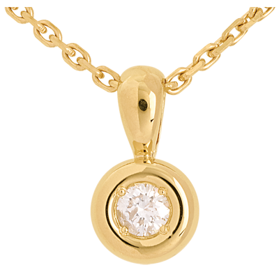 Un diamante custodito in un nido d'Oro giallo, per un ciondolo raffinato e femminile.