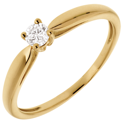 La delicatezza di un anello a gambo smussato, coronato da un diamante su montatura a griffes.