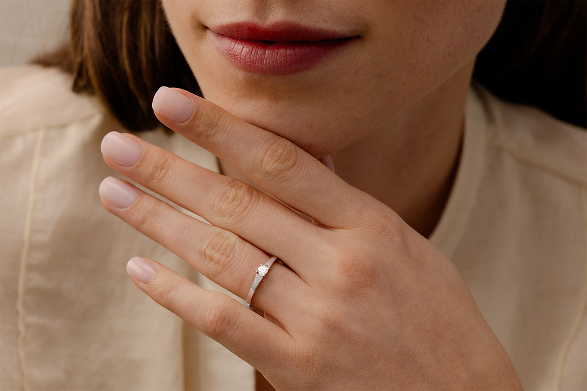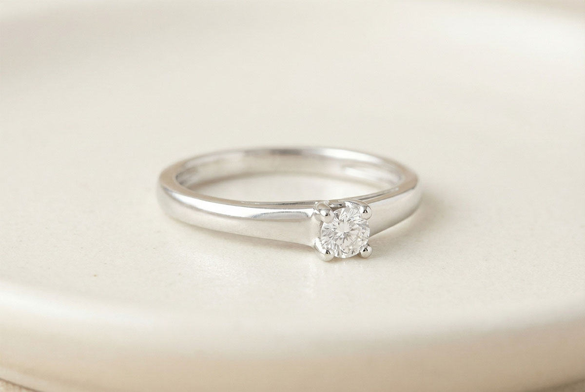 La purezza di un diamante centrale su una montatura sobria dall'eleganza senza tempo.