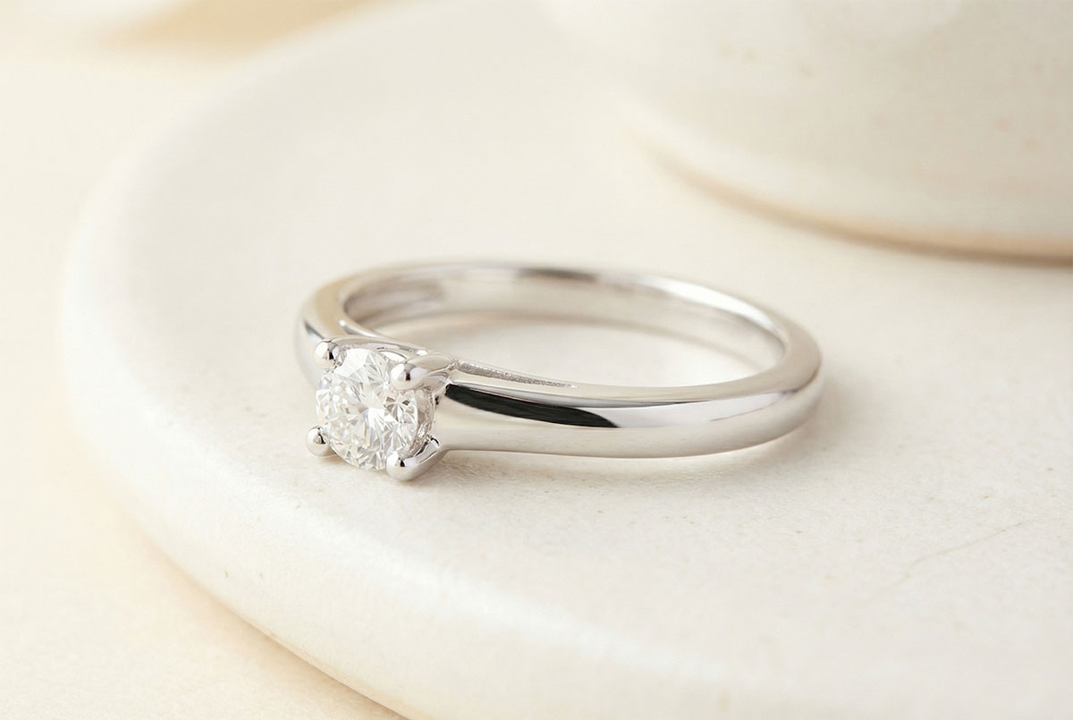 La purezza di un diamante centrale su una montatura sobria dall'eleganza senza tempo.