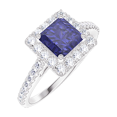 Anello Oro bianco 18 carati - Zaffiro sintetico Principessa 0.5 Carati - Halo Diamante di laboratorio - Incastonatura Diamante di laboratorio