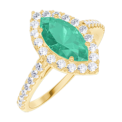 « L'ATELIER » N. 1007172Anello Oro giallo 18 carati - Smeraldo sintetico Marchesa 0.5 Carati - Halo Diamante di laboratorio - Incastonatura Diamante di laboratorio