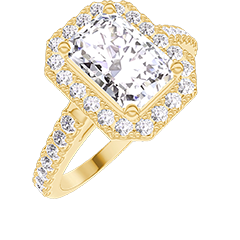 Anello Oro giallo 9 carati - Diamante Rettangolo 1 Carati - Halo Diamante - Incastonatura Diamante