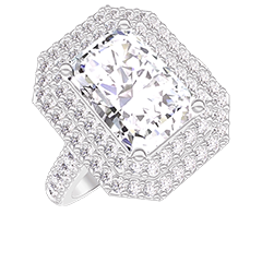 « L'ATELIER » N. 1378150Anello Oro bianco 9 carati - Diamante di laboratorio Rettangolo 2 Carati - Halo Diamante di laboratorio - Incastonatura Diamante di laboratorio