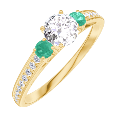« L'ATELIER » Nº160085Anello Oro giallo 18 carati - Diamante Rotonda 0.3 Carati - Pietre laterali Smeraldo - Incastonatura Diamante 4.8