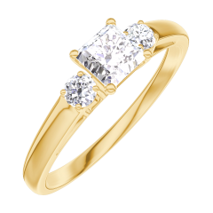 Anello Oro giallo 18 carati - Diamante Principessa 0.3 Carati - Pietre laterali Diamante