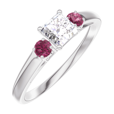 « L'ATELIER » N. 160144Anello Oro bianco 9 carati - Diamante Principessa 0.3 Carati - Pietre laterali Rubino