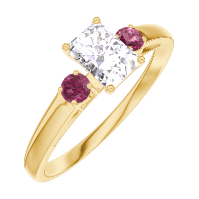 « L'ATELIER » Nº160241Anello Oro giallo 18 carati - Diamante Rettangolo 0.3 Carati - Pietre laterali Rubino