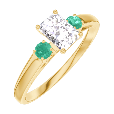 « L'ATELIER » N. 160282Anello Oro giallo 9 carati - Diamante Rettangolo 0.3 Carati - Pietre laterali Smeraldo