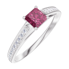 Anello Oro bianco 9 carati - Rubino Principessa 0.3 Carati - Incastonatura Diamante