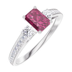 Anello Oro bianco 9 carati - Rubino Rettangolo 0.3 Carati - Pietre laterali Diamante - Incastonatura Diamante