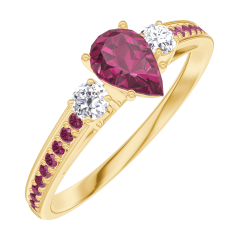 « L'ATELIER » N. 161030Anello Oro giallo 9 carati - Rubino Goccia 0.3 Carati - Pietre laterali Diamante - Incastonatura Rubino