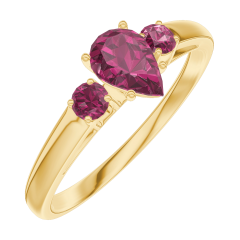 Anello Oro giallo 18 carati - Rubino Goccia 0.3 Carati - Pietre laterali Rubino