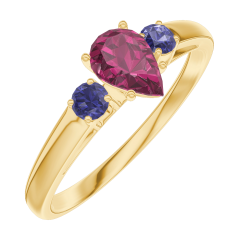 Anello Oro giallo 18 carati - Rubino Goccia 0.3 Carati - Pietre laterali Zaffiro blu