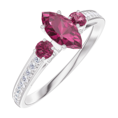 Anello Oro bianco 9 carati - Rubino Marchesa 0.3 Carati - Pietre laterali Rubino - Incastonatura Diamante
