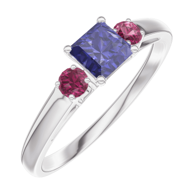 « L'ATELIER » N. 161343Anello Oro bianco 18 carati - Zaffiro blu Principessa 0.3 Carati - Pietre laterali Rubino