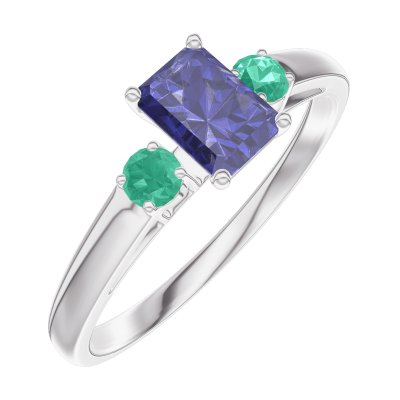 « L'ATELIER » N. 161484Anello Oro bianco 9 carati - Zaffiro blu Rettangolo 0.3 Carati - Pietre laterali Smeraldo