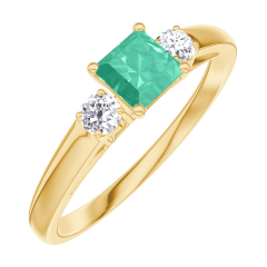 Anello Oro giallo 18 carati - Smeraldo Principessa 0.3 Carati - Pietre laterali Diamante