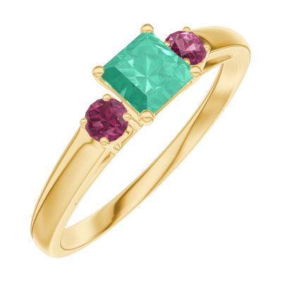 « L'ATELIER » Nº161942Anello Oro giallo 9 carati - Smeraldo Principessa 0.3 Carati - Pietre laterali Rubino