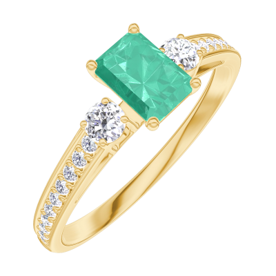 « L'ATELIER » Nº162026Anello Oro giallo 9 carati - Smeraldo Rettangolo 0.3 Carati - Pietre laterali Diamante - Incastonatura Diamante