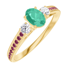 Anello Oro giallo 9 carati - Smeraldo Ovale 0.3 Carati - Pietre laterali Diamante - Incastonatura Rubino