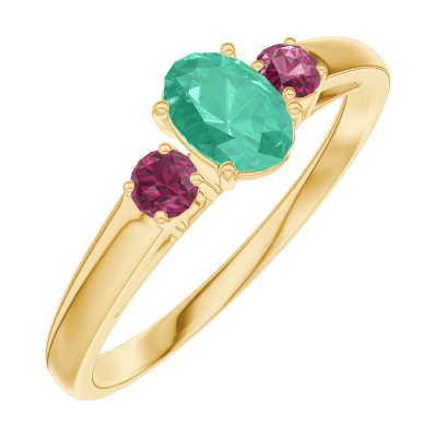 « L'ATELIER » Nº162142Anello Oro giallo 9 carati - Smeraldo Ovale 0.3 Carati - Pietre laterali Rubino 5