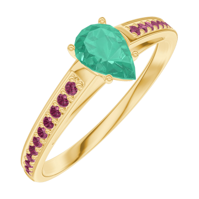 « L'ATELIER » Nº162209Anello Oro giallo 18 carati - Smeraldo Goccia 0.3 Carati - Incastonatura Rubino