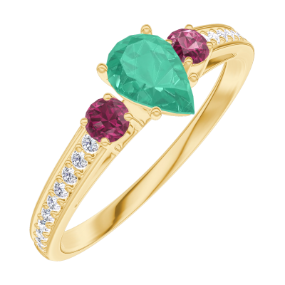 « L'ATELIER » Nº162245Anello Oro giallo 18 carati - Smeraldo Goccia 0.3 Carati - Pietre laterali Rubino - Incastonatura Diamante