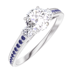 Anello Oro bianco 9 carati - Diamante Rotonda 0.5 Carati - Pietre laterali Diamante - Incastonatura Zaffiro blu