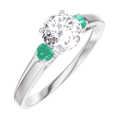 « L'ATELIER » Nº162483Anello Oro bianco 18 carati - Diamante Rotonda 0.5 Carati - Pietre laterali Smeraldo 4.9 (16)