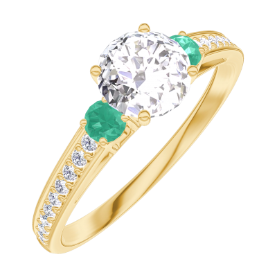 « L'ATELIER » Nº162486Anello Oro giallo 9 carati - Diamante Rotonda 0.5 Carati - Pietre laterali Smeraldo - Incastonatura Diamante 4.9 (16)