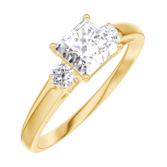 Anello Oro giallo 18 carati - Diamante Principessa 0.5 Carati - Pietre laterali Diamante